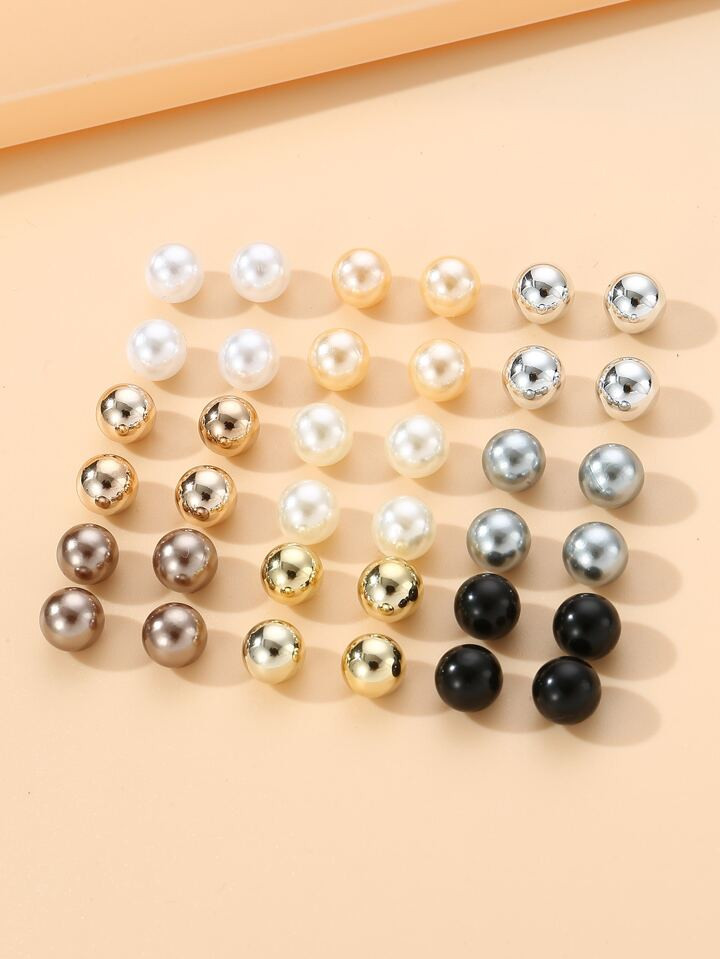 18pairs/Set Fashion Mixed-Color Faux Pearl Earrings For Women
